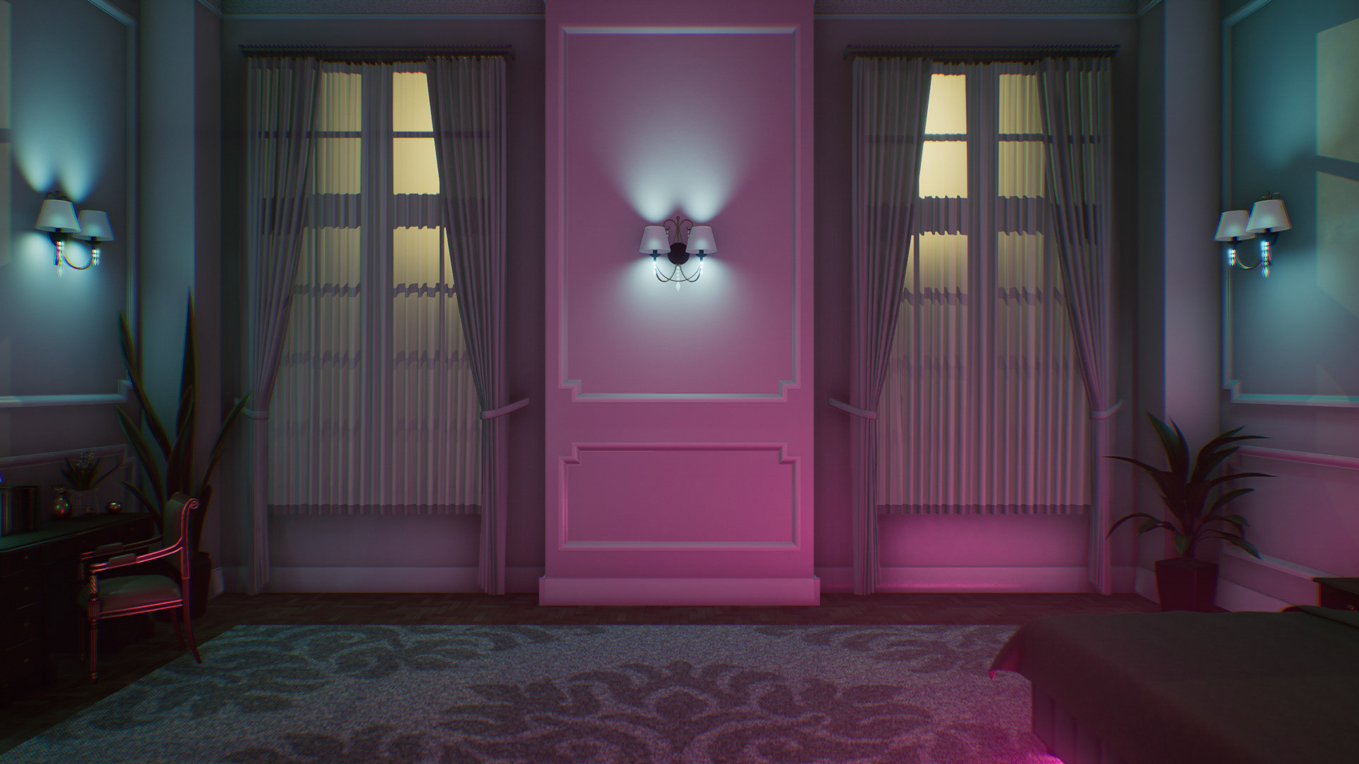 Dream-like interior lighting of a hotel room. I created the lighting, cameras and post processing. The base of this scene came from Salam's "Hotel Room" scene. I created a slightly different layout, edited many materials and modeled some new wall details. Additional props came from the Edith Finch prop set and the Arch Vis Polish Pack #2. The lighting is fully dynamic.